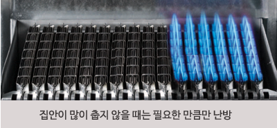 온도 변화에 따라 불꽃의 크기를 자동으로 조절하는 가스비절감의 핵심기술입니다.
