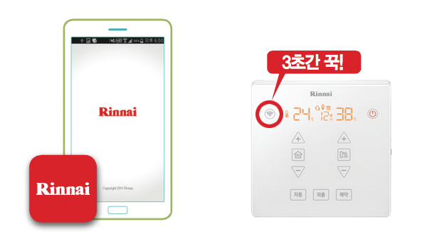 실내온도조절기의 Wi -Fi 버튼을 3초간 눌러 등록모드를 실행하세요.(난방/온수 off상태에서 실행)