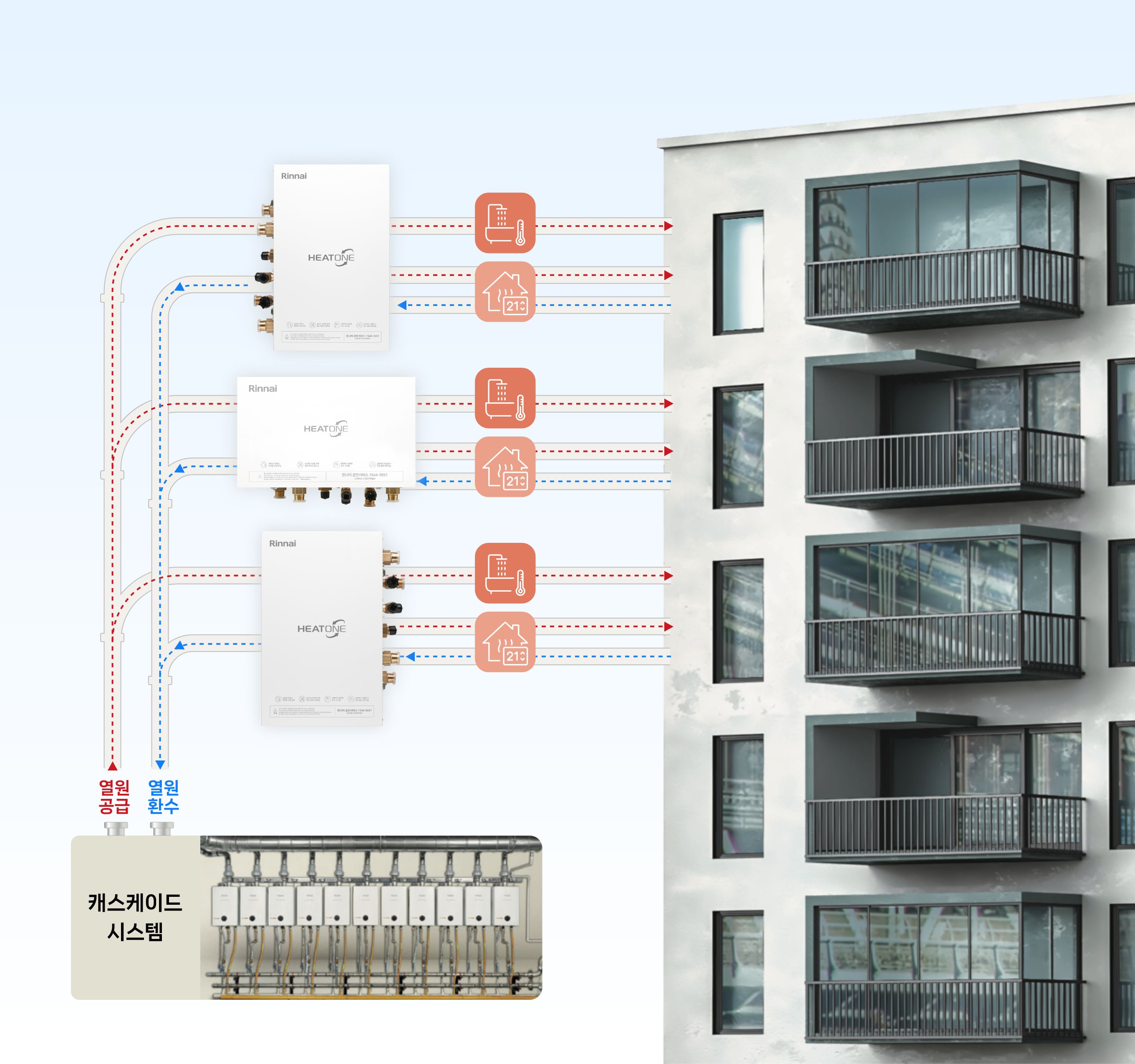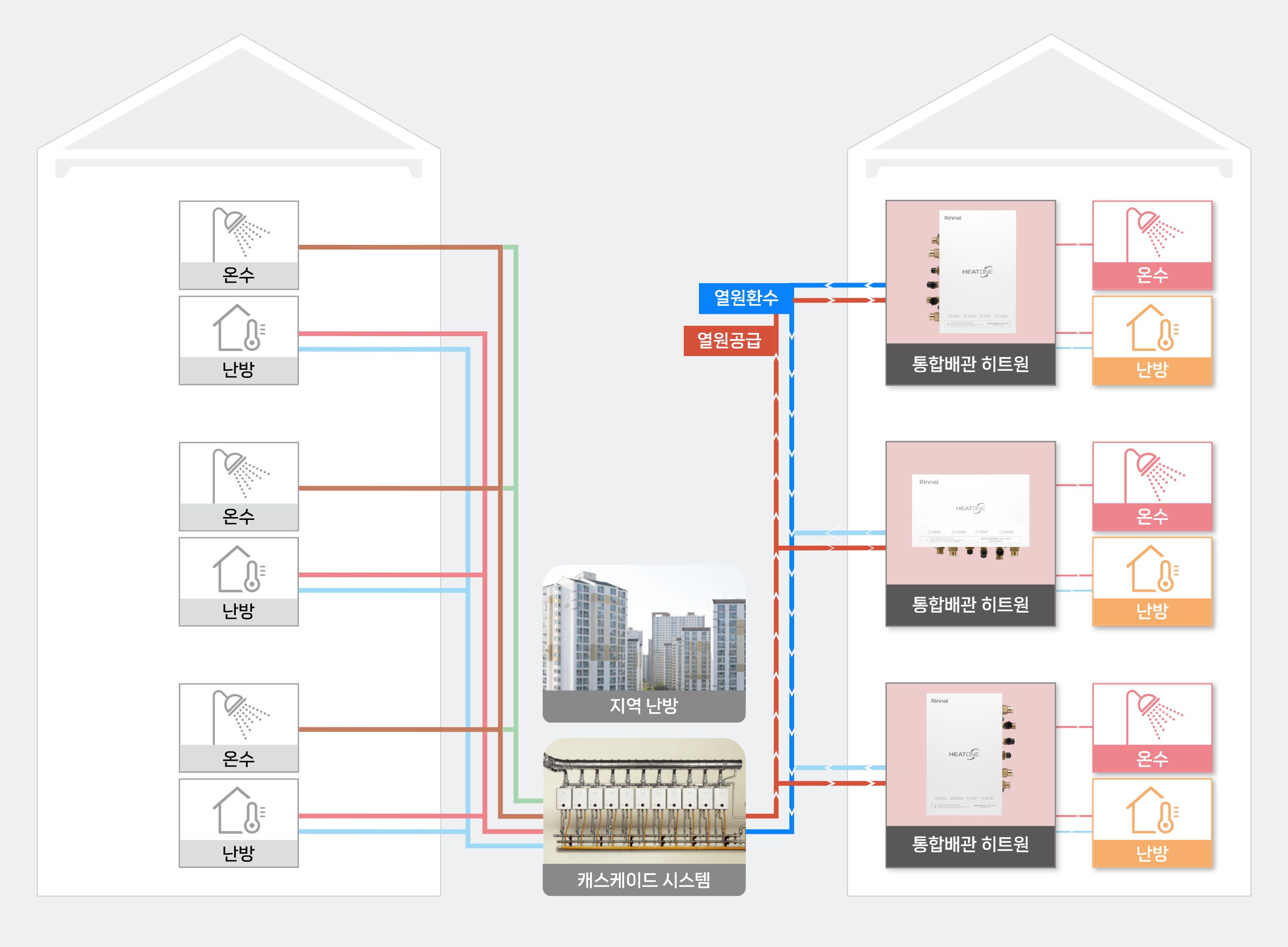 지역난방, 중앙난방 또는 캐스케이드의 난방수