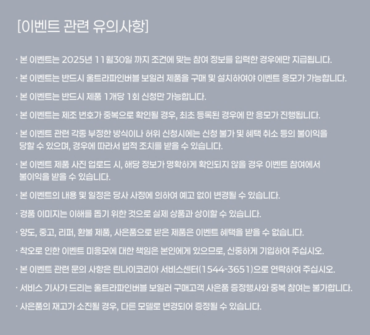 유류보일러, 전기보일러, 냉/난방시스템(GHP,EHP,GA), 에어컨품질보증기간 : 2년 / 부품보유기간 : 7년