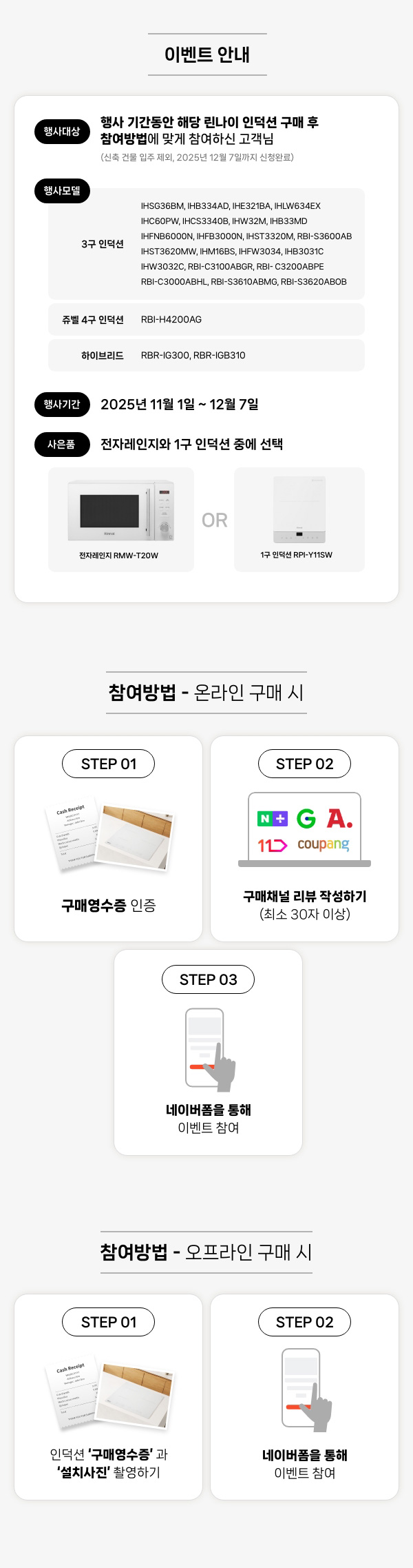 핵심부품: 전자레인지 - 마그네트론 / 냉장고 - 콤프레셔 / 팬히터 - 버너품질보증기간 : 3년