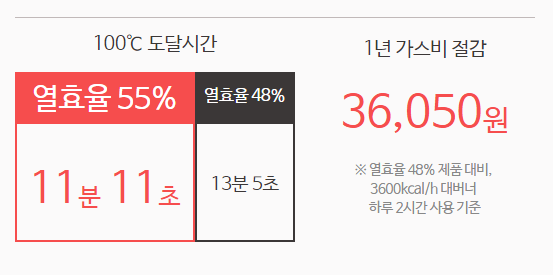 같은 양을 더 빠르게 조리하는 것, 열효율의 차이입니다.