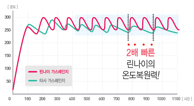 과열을 빨리 식혀주고! 강불로 빨리 복원되고! 온도 유지도 정확하게!불맛이 중요한 한국요리, 린나이가 정답입니다!