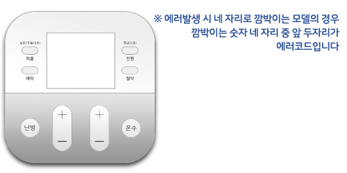 · 보일러 본체의 220V 전원코드를 뽑았다 다시 꽂은 후, 정상작동 여부를 확인해주세요.