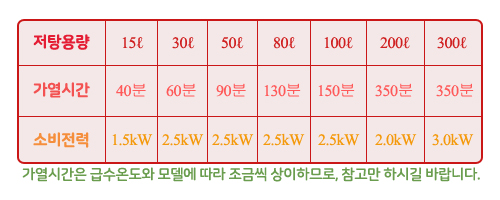 · 저장식 전기온수기는 온수가 바로 나오는 방식이 아니라 내통에 채워진 차가운 물을 내부의 전기히터봉으로 가열하여 사용하는 방식입니다.