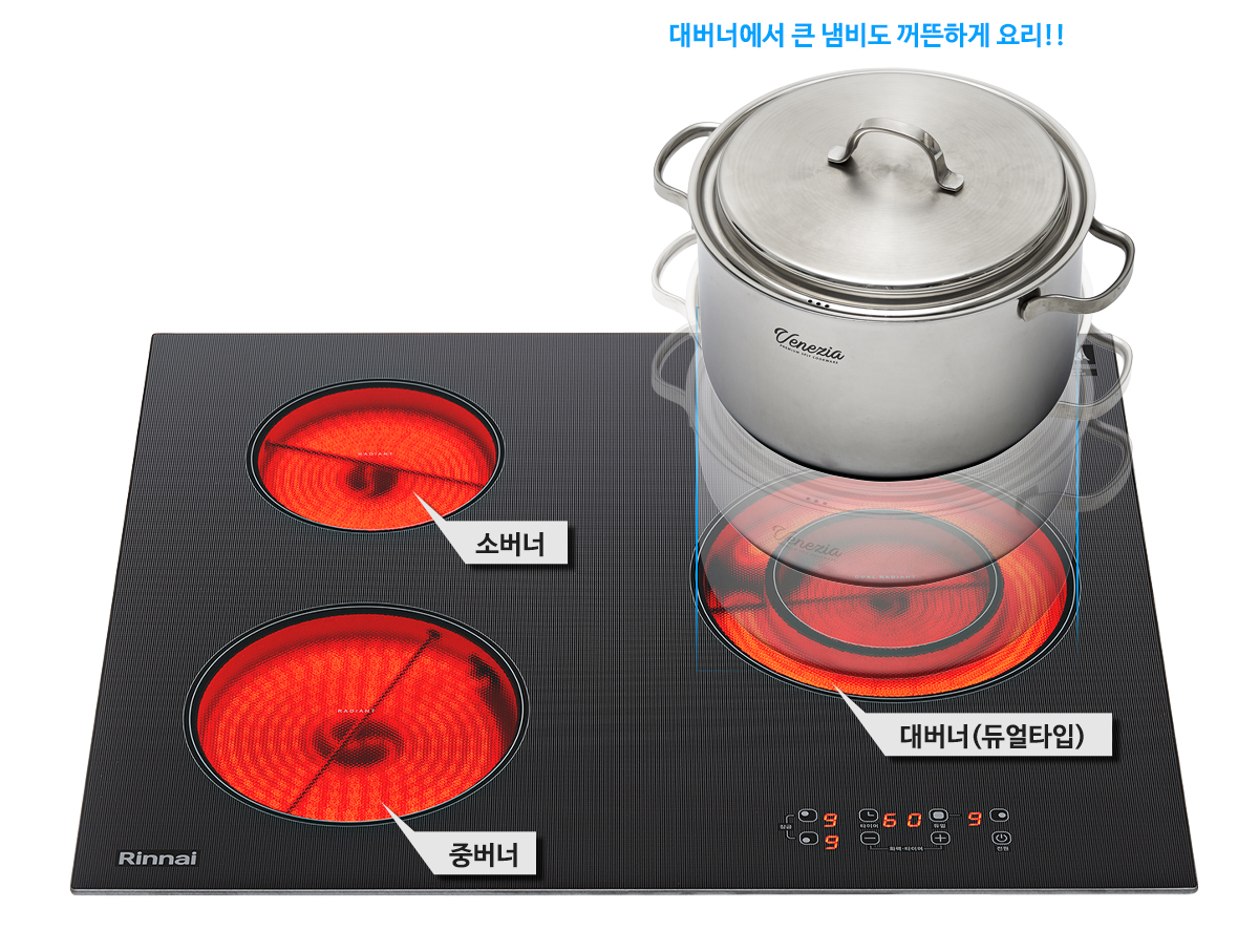 용기 사이즈에 맞게 라디언트 듀얼버너
