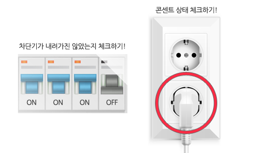 ※소형 가전도 작동이 안된다면, 해당 콘센트의 이상이니 가까운 전기설비업체를 통해 문의해주세요.