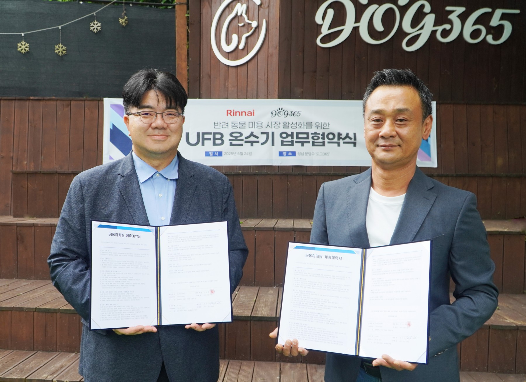 린나이는 반려견 훈련 및 미용 전문센터인 ‘도그365’와 함께 UFB(Ultra Fine Bubble) 기술을 활용한 공동 마케팅을 위한 업무협약(MOU)을 체결했다고 밝혔다.