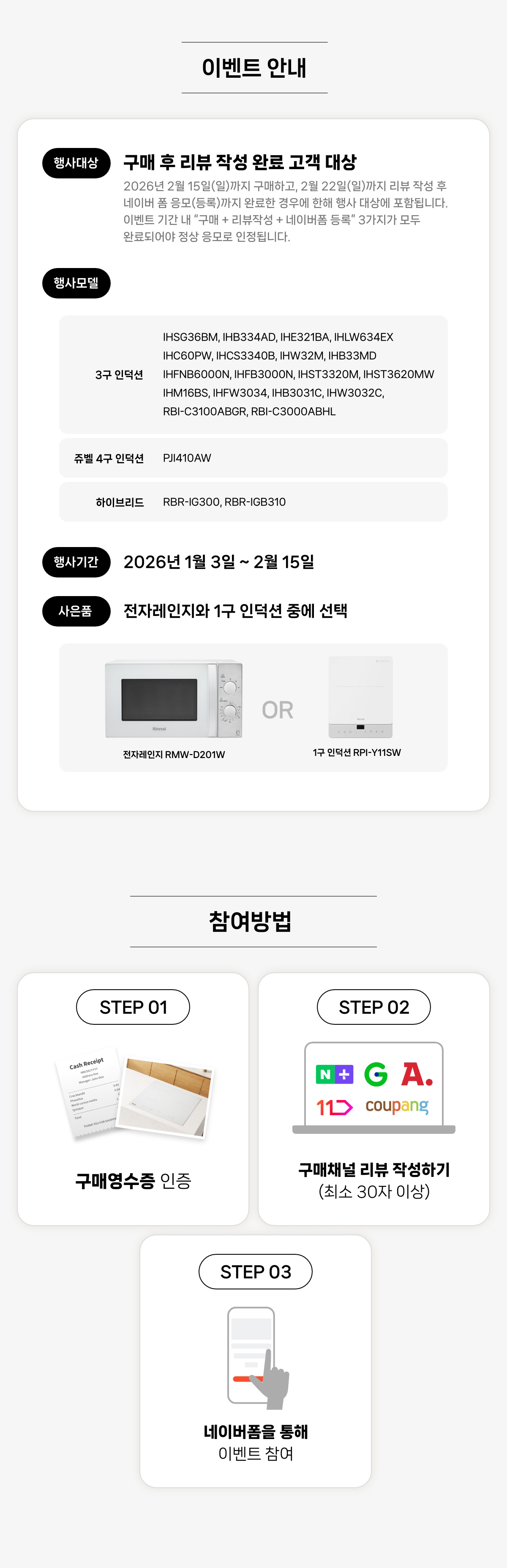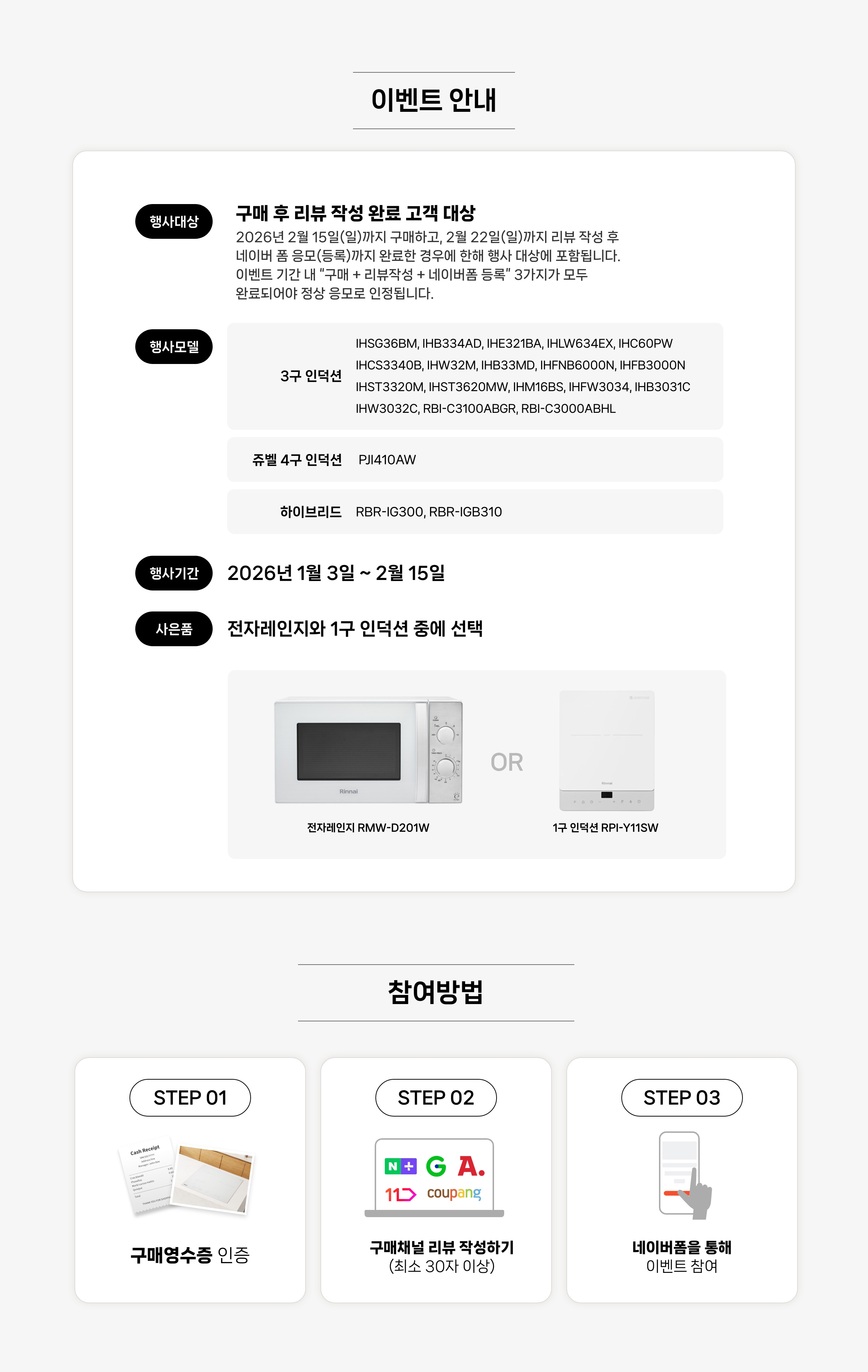 설맞이 린나이 사은행사 전기레인지를