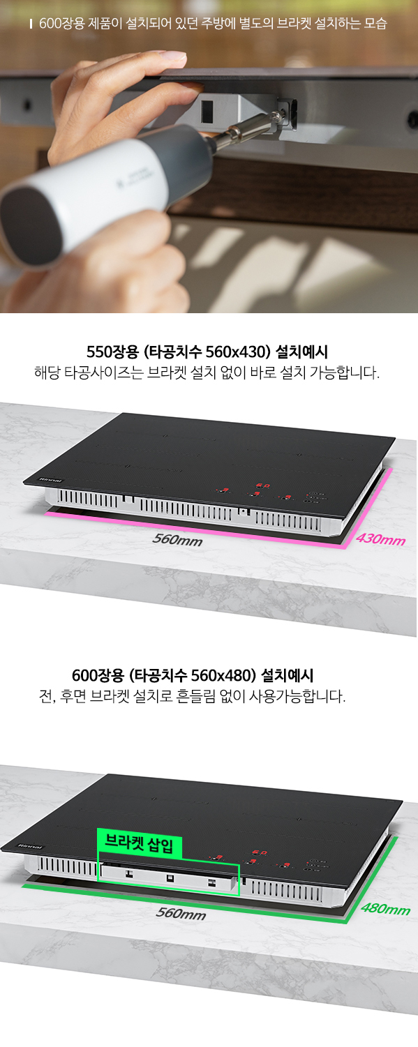 | 상판가공치수(WxD)mm | 560 X 430 / 560 X 480(브라켓설치시) |