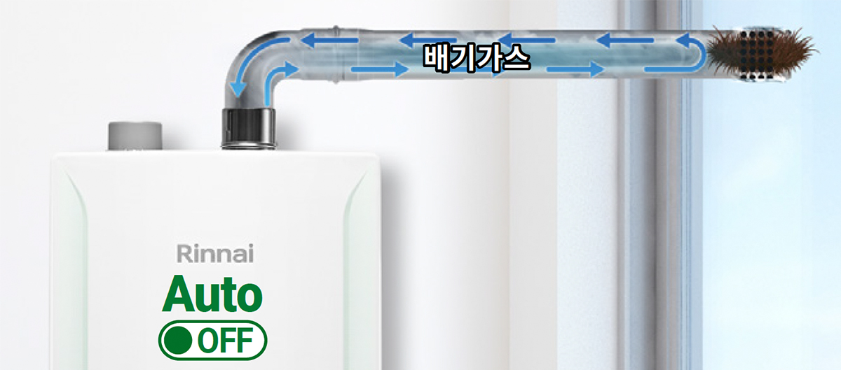 보일러와 배기통의 연결 상태를 확인하세요. 배기통이 빠져있을 경우, 폐가스가 누출되어 일산화탄소 중독사고가 발생할 수 있습니다. 문제시 설치업자에게 연락하세요.
